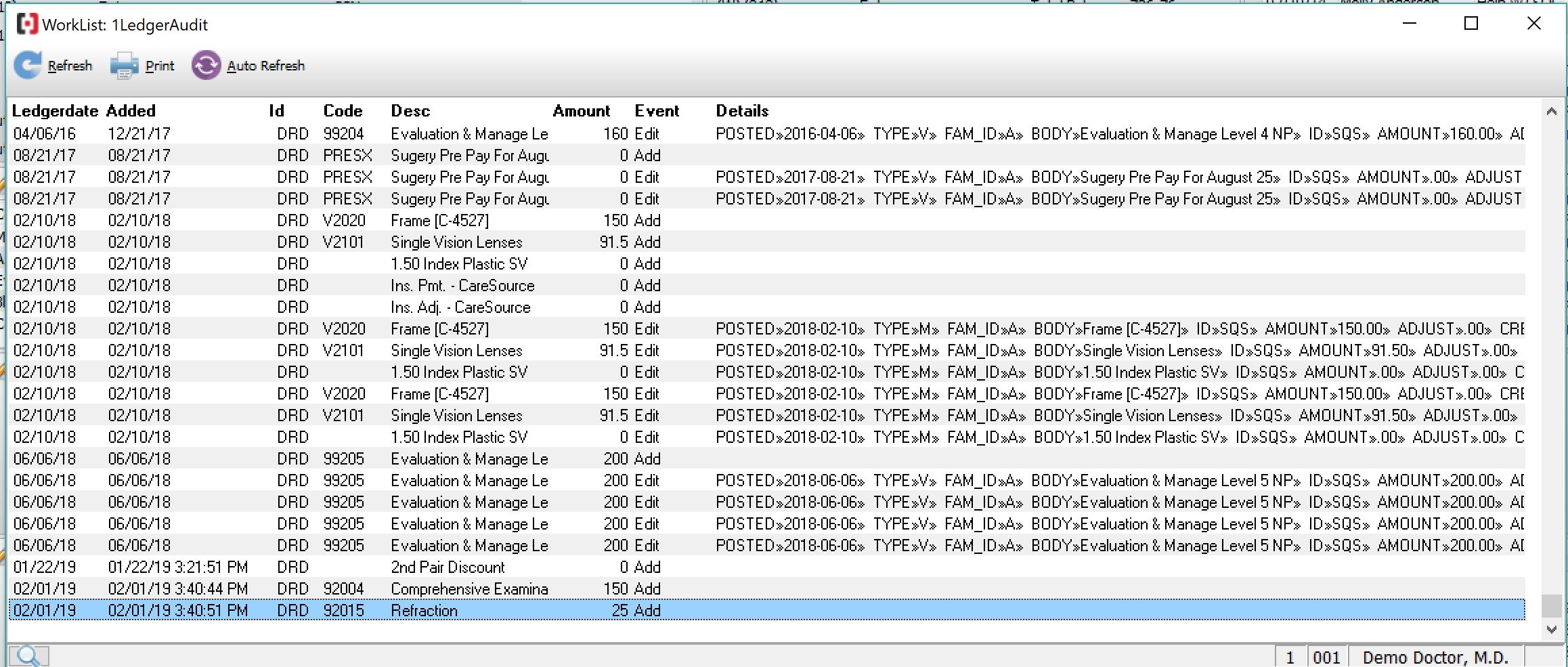 This worklist was created by Destinations Consulting and is provided at no charge to your practice. This worklist provides more detailed audit information about the entire ledger, including deleted lines.