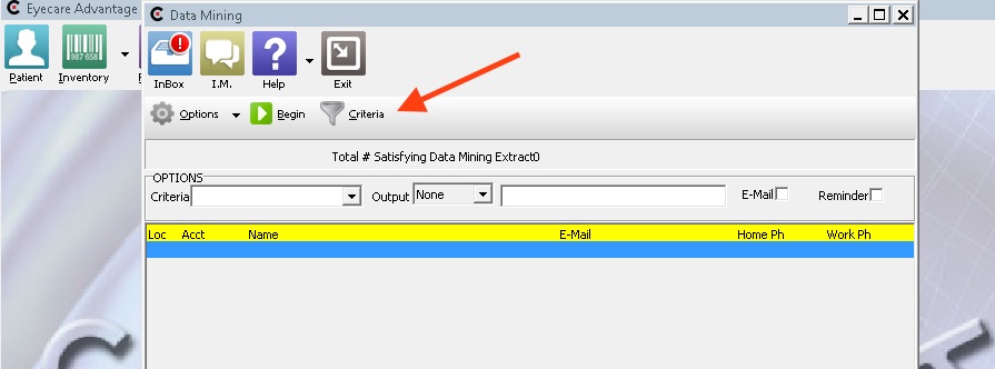 From the main Compulink screen, select the green Data Mining button. From this screen, select "Criteria":